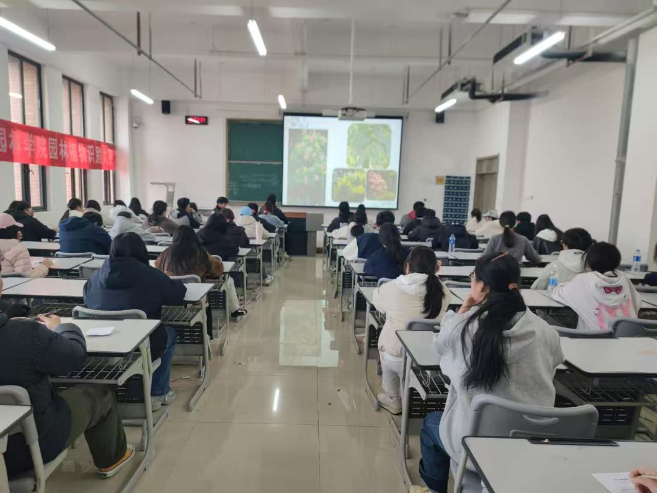 大赛积极践行“党建 +” 理念,深度融入党支部 “实践育人” 核心。通过构建 “总支指导、支部策划、教研室执行、学生参与” 的协同机制,明确各环节责任,确保赛事有序推进。比赛采用限时作答形式,借助多媒体展示图片,聚焦木本植物并兼顾草本植物,全面考查学生对园林植物的认知与辨别能力。