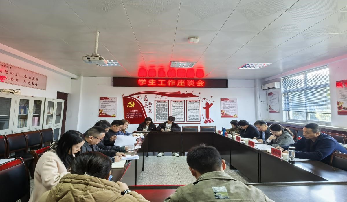孟媛认真听取了学院辅导员关于思想政治教育、球王会、学生干部管理等方面的工作汇报,充分肯定了学院学生工作取得的成绩,结合辅导员学生干部提出的问题进行了具体指导。